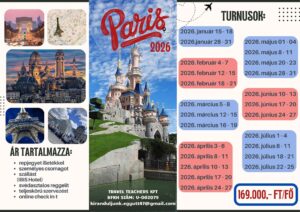 • Úticél és időtartam: Párizs – Disneyland, időtartam: 4 nap / 3 éjszaka